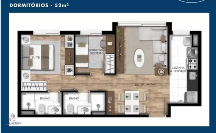 Área Útil: 52m²